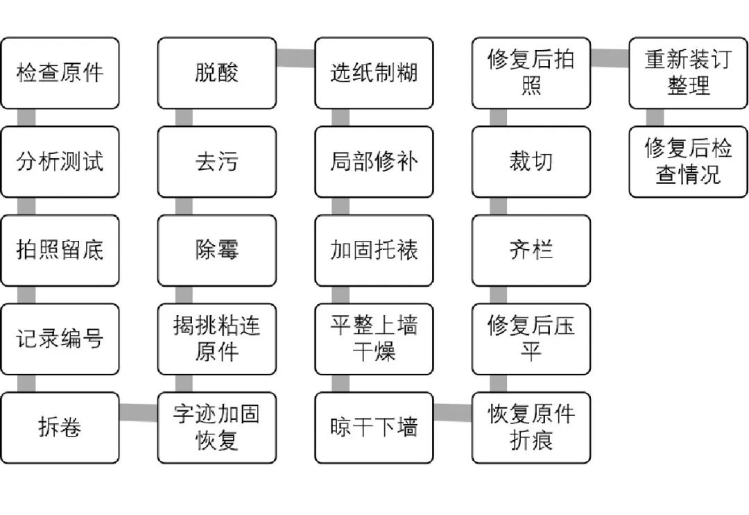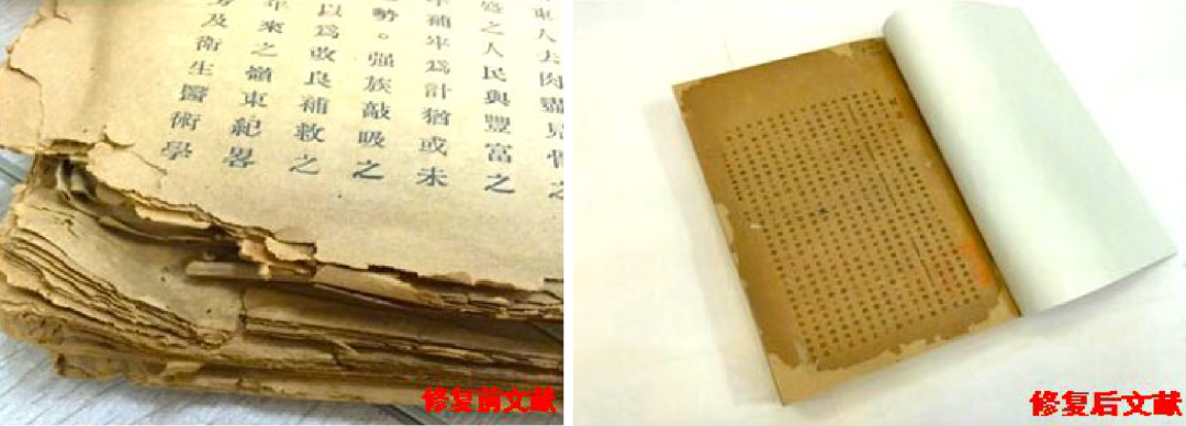 紙質文獻在保存和使用中會出現各種各樣、程度不同的破損現象。文獻修復是使退變或損壞的文獻恢復或接近原有特征,或對其進行加固的工作。目前已有大量的珍貴文獻處于瀕危狀態(tài),科學地實施文獻修復工作,對于有效延長文獻壽命、保存歷史文化遺產,具有重要的意義。