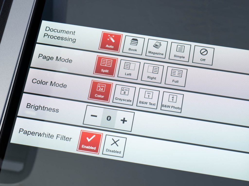 zeta軟件的最新版本(1.6)提供了優(yōu)化圖像結(jié)果的功能。該軟件可以自動(dòng)校正放置存在一個(gè)角度的原件,厚書的彎曲和折頁引起的變形可以得到糾正。在Office版本中,zeta軟件能夠移除一部分圖像元素噪聲,比如包含折痕的裝訂文檔和文件夾。集成的OCR(光學(xué)字符識(shí)別)引擎使得從書籍、文件夾和其他模板創(chuàng)建可搜索的pdf文件成為可能。