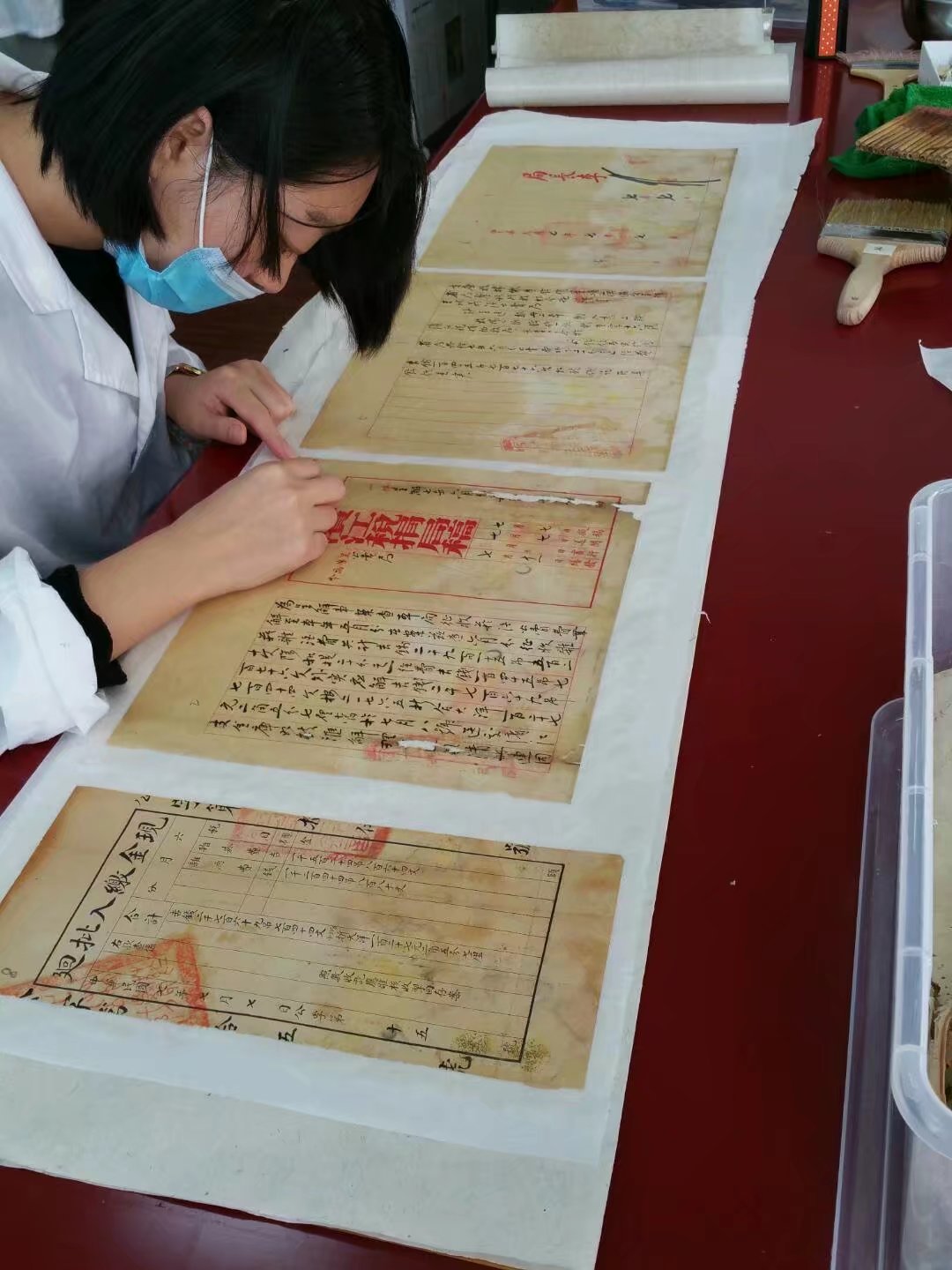 ①對于那些剛出庫等待修復的古籍,首先需要建立修復檔案,拍攝每一頁的破損情況,建立圖像和文字檔案。再根據(jù)破損情況設計修復方案。