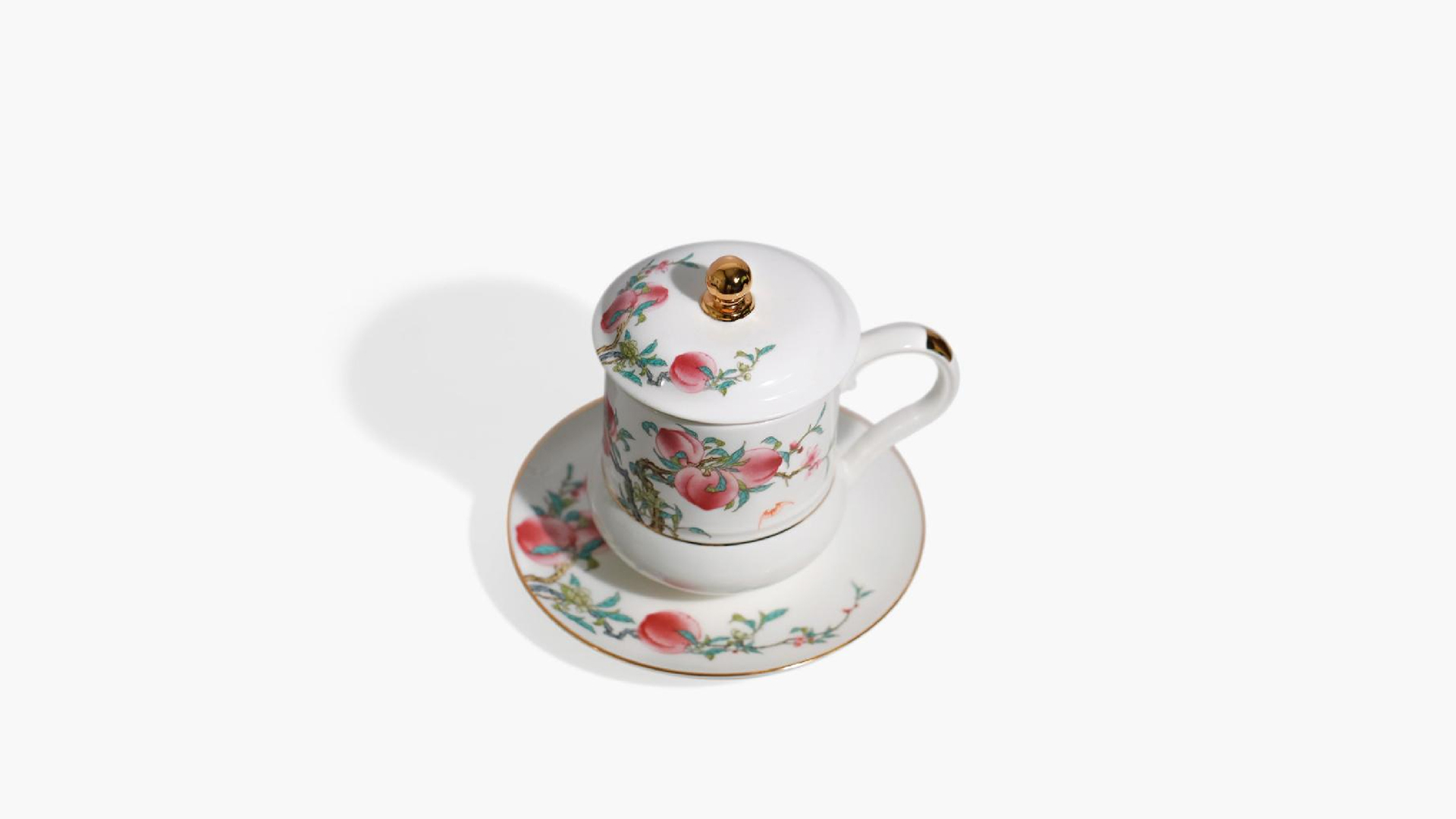 粉彩工藝,畫面福桃鮮活欲滴,給人粉潤柔和之感,讓人忍不 住伸手采擷,整體構(gòu)圖疏密結(jié)合,錯落有致,偶有桃花點綴,畫面充實而靈動。清宮藏寶、雍乾摯愛,“福桃”元素深受國人青睞,壽桃即延年益壽,蝠即好運幸福。將長壽、吉祥的美好祝?;没刹杵鳎T赣H人、友人幸福安康、平安喜樂。